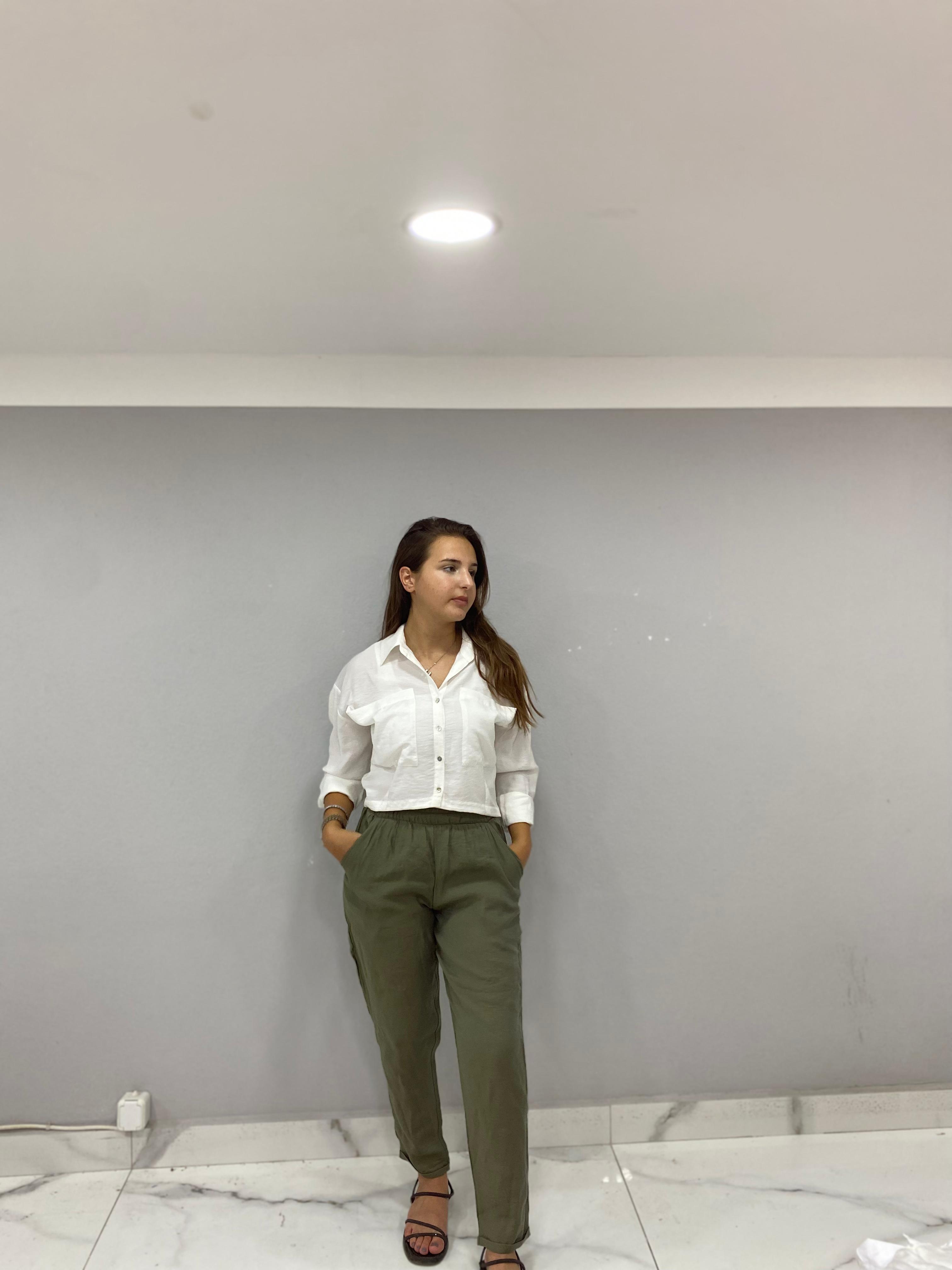 Haki Havuç Pantı-olon, stilinizde benzersiz bir dokunuş sağlamak için tasarlanmış etkileyici bir üründür. Bu pantolon, hem şık hem de rahat bir görünüm elde etmek isteyenler için ideal bir seçimdir. Havuç kesim tarzıyla, vücudunuzu mükemmel şekilde sararak kadınsı ve şık bir silüet oluşturur.