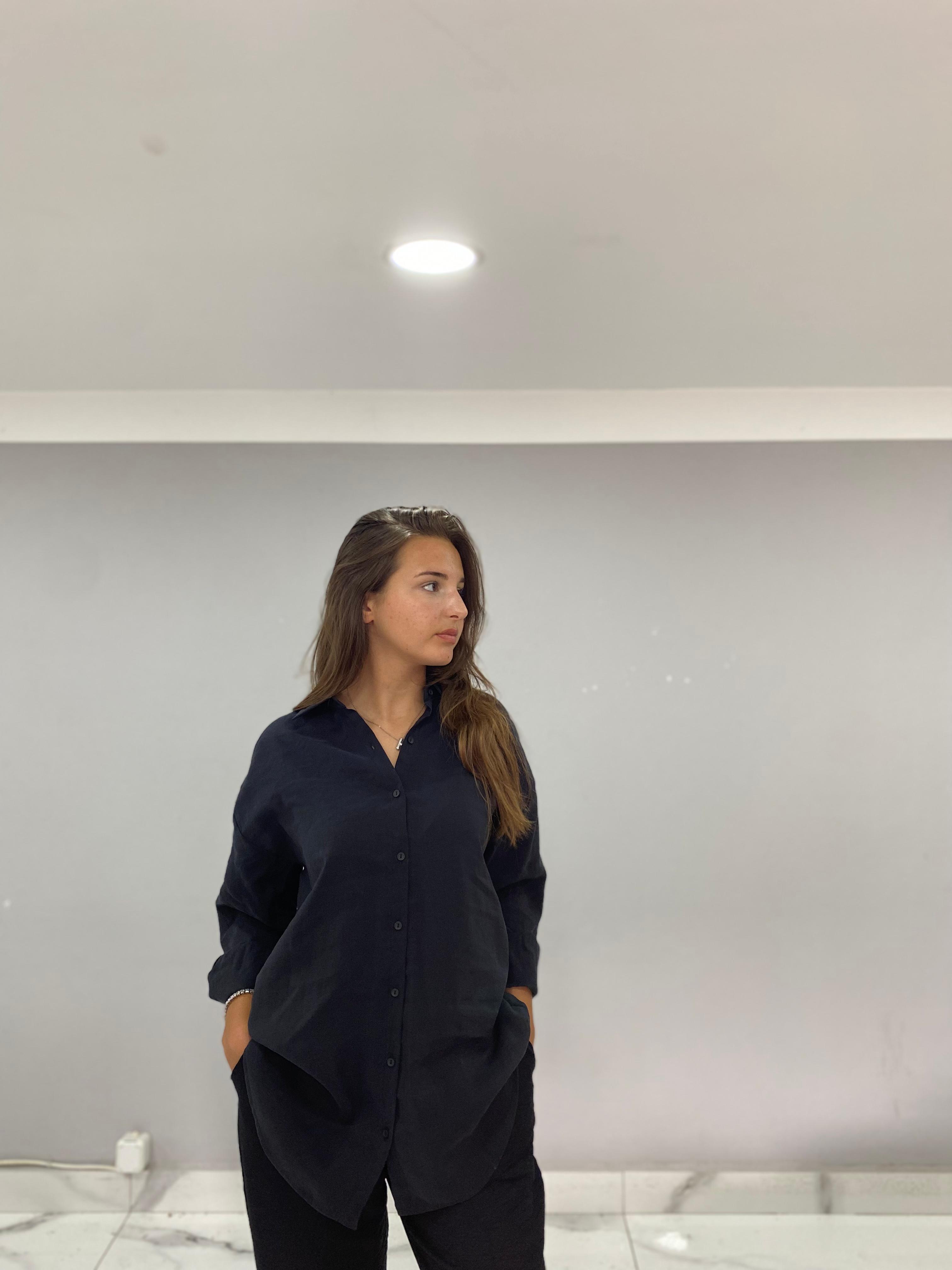 Siyah oversize gömlek, modern ve şık bir görünüm yaratmak isteyen her kadının gardırobunda olması gereken bir parçadır. Bu ürün, oversize kesimi ile hem rahat hem de tarz bir giyim deneyimi sunar.